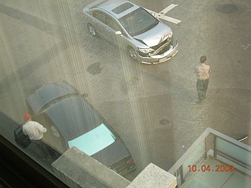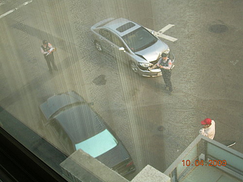 拿了相機往三樓跑, 果不其然又是一件車撞車的意外,