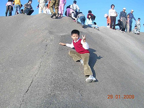上去容易下來難, 最後我是坐在斜坡上, 慢慢挪動屁股才從小鹽山上下來的.