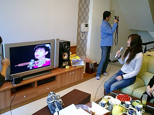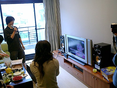 電視是Benq 37"的LCD, 而今天的新玩意是卡啦OK專用擴音喇叭,