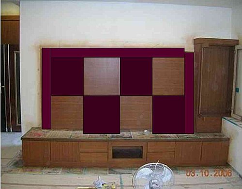 哇!! LV方格被擋住了, 而且還是只擋住一部份, 這樣就變醜了!!