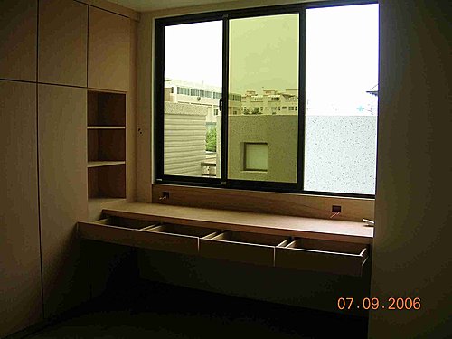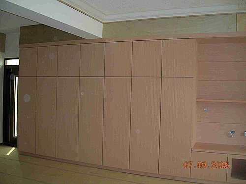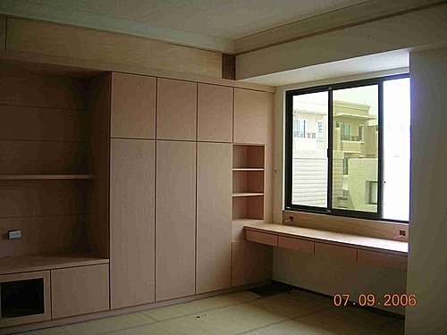 開門的照片, 左邊算起的第二個櫃子後面有一根柱子, 所以櫃子比較淺!!