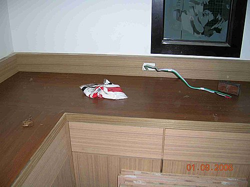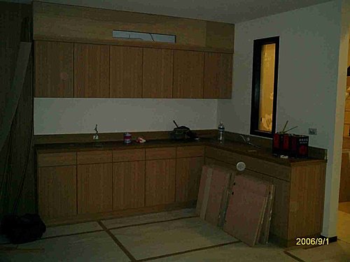 餐櫃已完工, 檯面上已有漂亮的貼皮, 石材就再看看囉!!