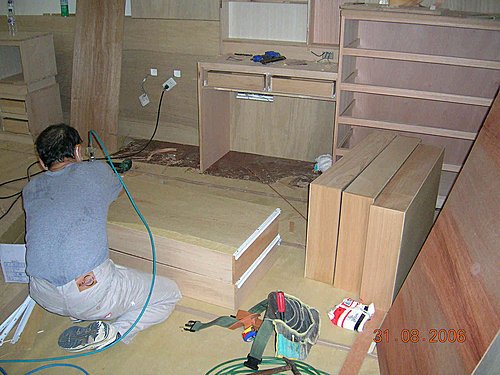 裝潢已經差不多了, 開始要貼皮收尾了!!