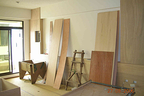 其中一座的衣櫃已完成主架構, 目前正躺在地上睡覺,