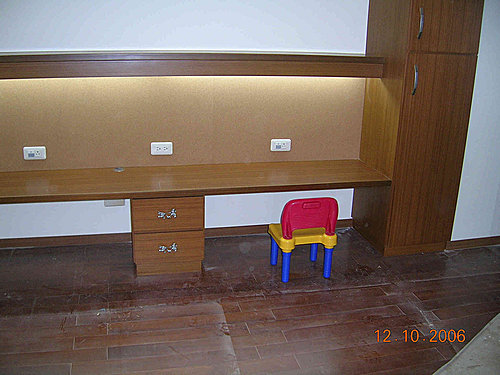 家裡的小小小書桌先前先用舊的兒童組合椅頂一下,