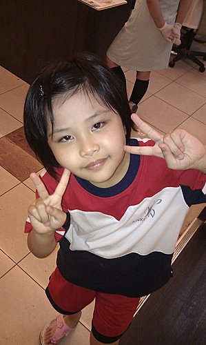 看不出我家妹妹還有些繪畫的天份,那天班親會前, 就看到這張被張貼在佈告欄上表揚.
