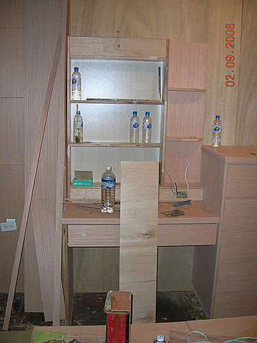 餐櫃已完工, 檯面上已有漂亮的貼皮, 石材就再看看囉!!