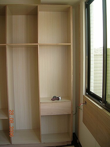 兩座衣櫥間的電視櫃預定地