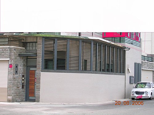 有一戶也是邊間(三角窗), 人家採光罩是這樣處理的,